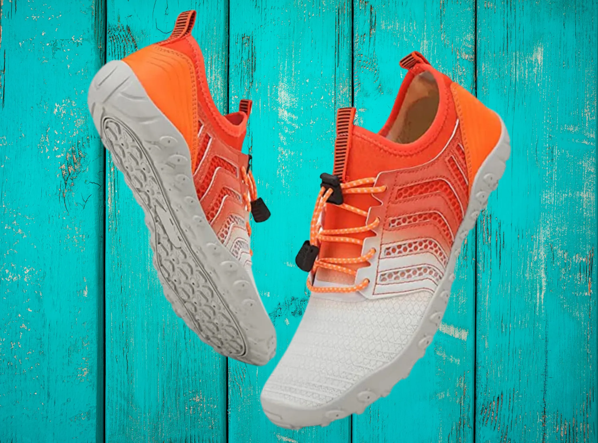 These vibrant and fun shark-themed water shoes are designed to add a playful touch to water activities. Featuring a vivid blue color with sharp white and red teeth, these shoes are both stylish and practical. The flexible material ensures comfort, while the sturdy grip helps prevent slipping on wet surfaces.
