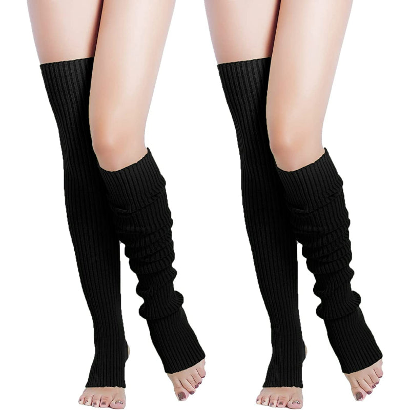 Pack of 2 Women Thigh High Socks Extra Long Cotton Knit Warm Thick Tall Long Boot Stockings Leg Warmers