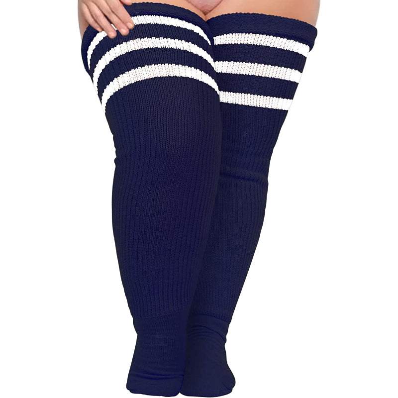 Plus Size Womens Thigh High Socks for Thick Thighs- Extra Long Striped Thick Over the Knee Stockings- Leg Warmer Boot Socks