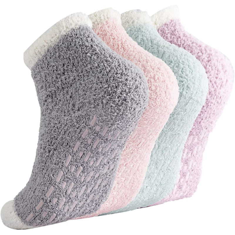Pack Of 4 Non Slip Socks Hospital Socks with Grips for Women Grip Socks for Women Fluffy Socks with Grips for Women Slipper Socks