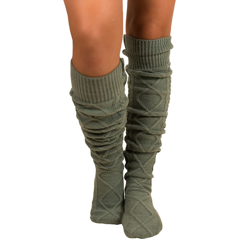 Women's Cable Knit Knee-High Winter Boot Socks Extra Long Thigh Leg Warmers Stocking