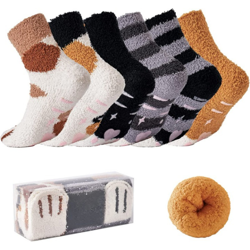 Pack Of 6 Fuzzy Socks for Women with Grips Plush Fuzzy Socks Sleep Cozy socks Sleep Socks Winter Soft Fluffy Sock