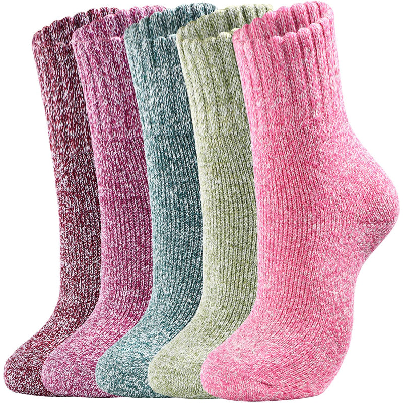 5 Pairs - Crew Socks Wool Boot for Women Super Soft Hiking Thick Knit Cabin Cozy Warm Long - Quality Products
