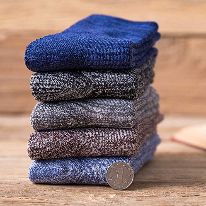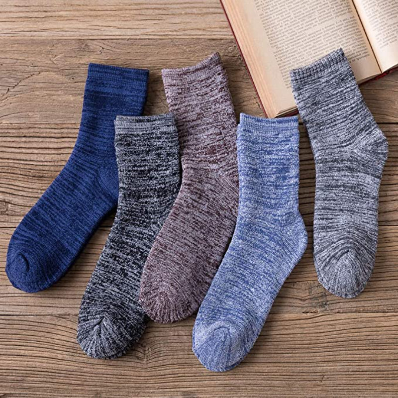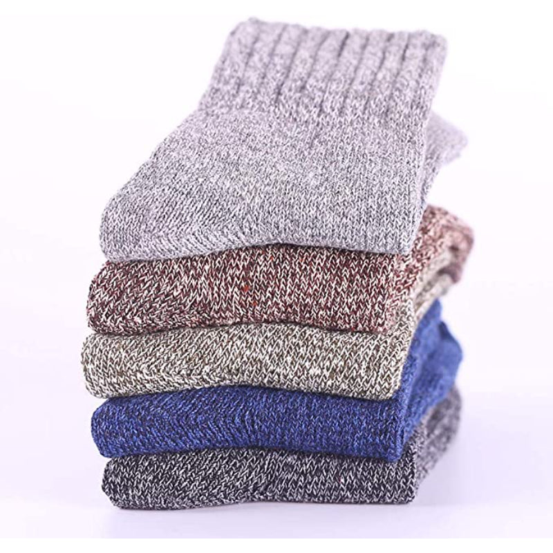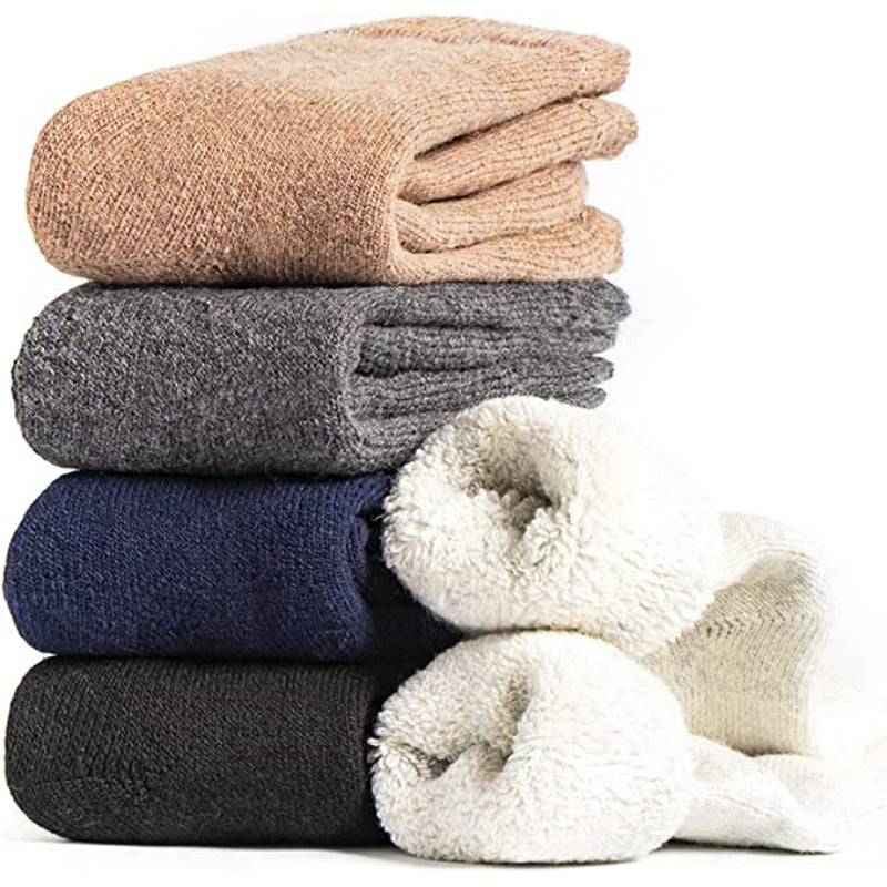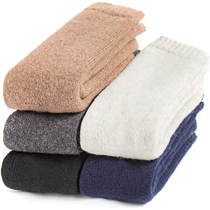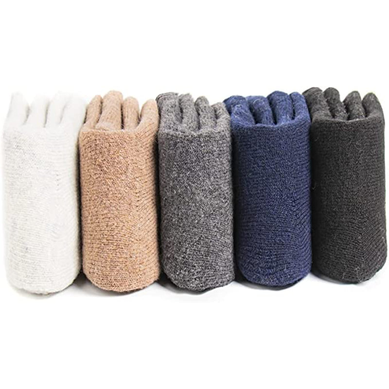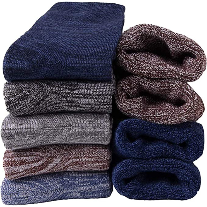 These 5 Pairs Of Thick Warm Winter Wool Socks are designed to keep your feet warm and comfortable during the cold winter months. Made with a blend of polyester, wool, spandex, and cotton, these socks are stretchy and conform to the shape of your feet for a perfect fit. The solid pattern and variety of colors make them versatile and suitable for any outfit. They are easy to care for, as they can be machine washed.