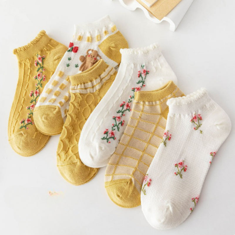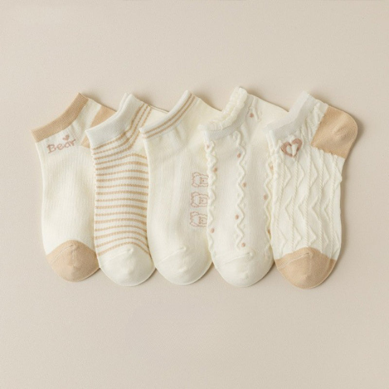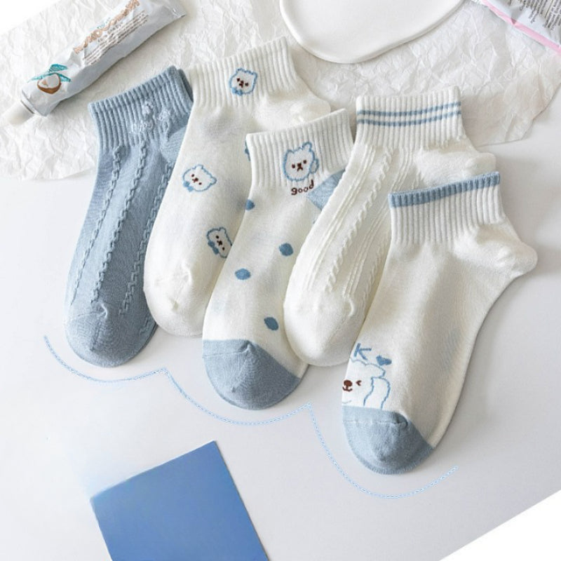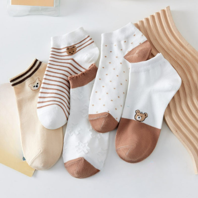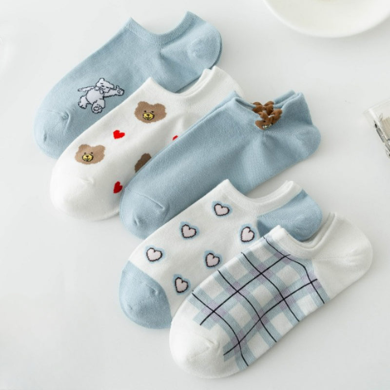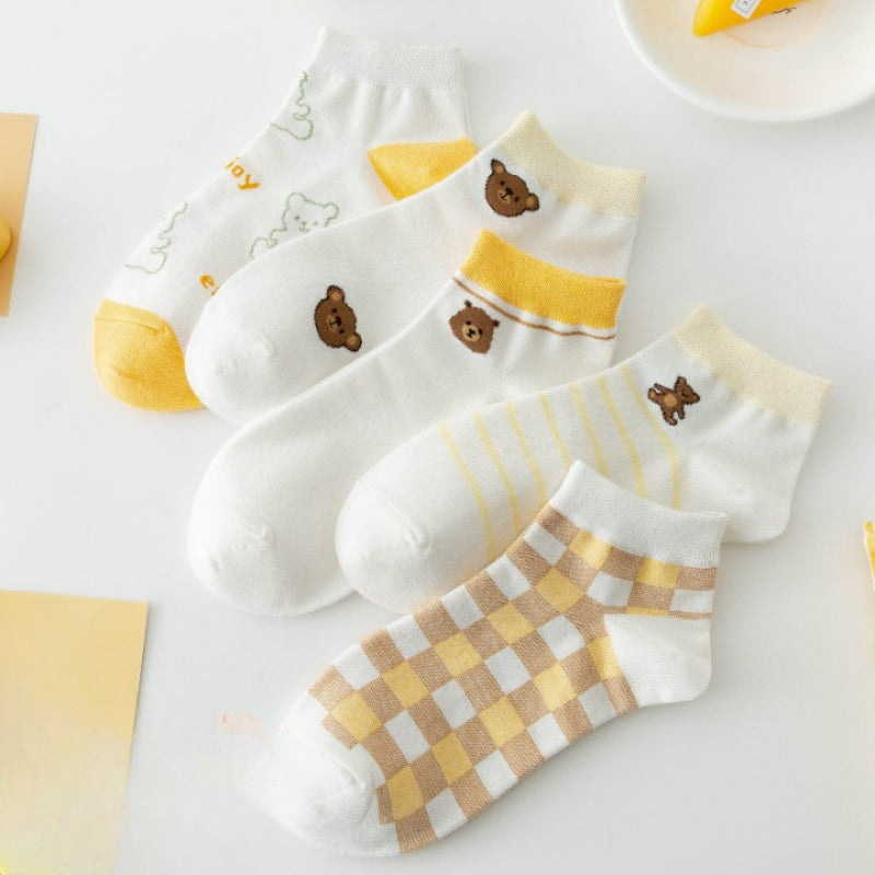 Introducing our Bear Printed Low Cut Breathable Socks, designed for comfort and style. Crafted from high-quality cotton blends, these casual socks feature a trendy plaid pattern. With a low tube height and thin thickness, they offer a breathable and lightweight feel. Each pack contains 5 pairs, ensuring you have a variety to match your outfits. Elevate your sock game with these fashionable and versatile socks that provide all-day comfort. Perfect for both casual and formal occasions.