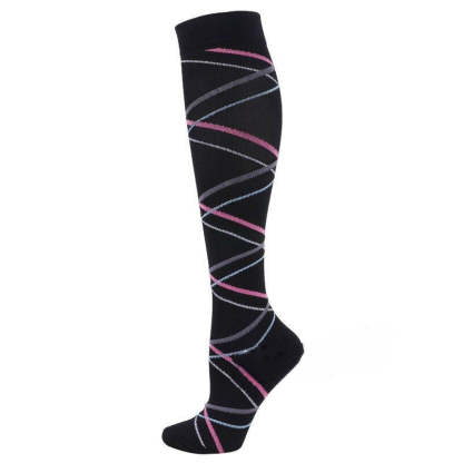 Introducing the ultimate unisex gift: these knee-high, striped, nylon Black Unisex Adult Compression Socks. With top-of-the-line compression technology, they provide the perfect combination of swag and salve. So add a little pep to your step with these fashion-friendly footsie wearables, cause life's too short to be sore.