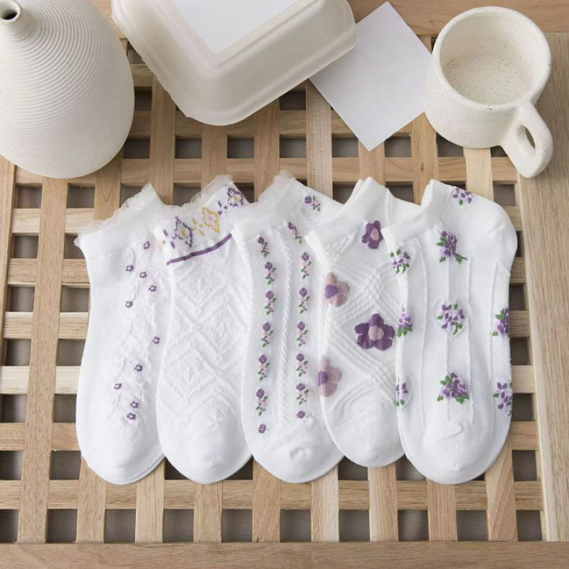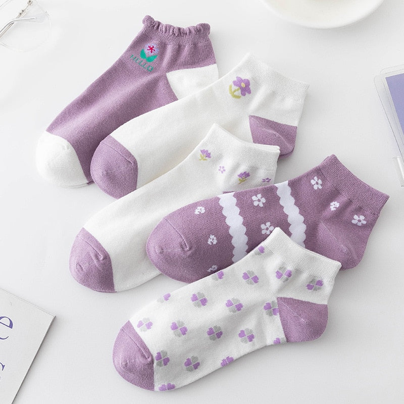 Introducing our Cartoon Printed Low Tube Breathable Socks! These socks feature a trendy plaid pattern, making them a stylish addition to your casual attire. Crafted with a blend of soft cotton, they offer comfort and breathability throughout the day. With a low tube height and thin thickness, these socks are perfect for everyday wear. Each set includes 5 pairs, ensuring you have a variety of designs to choose from. Upgrade your sock game with our high-quality, fashionable socks.
