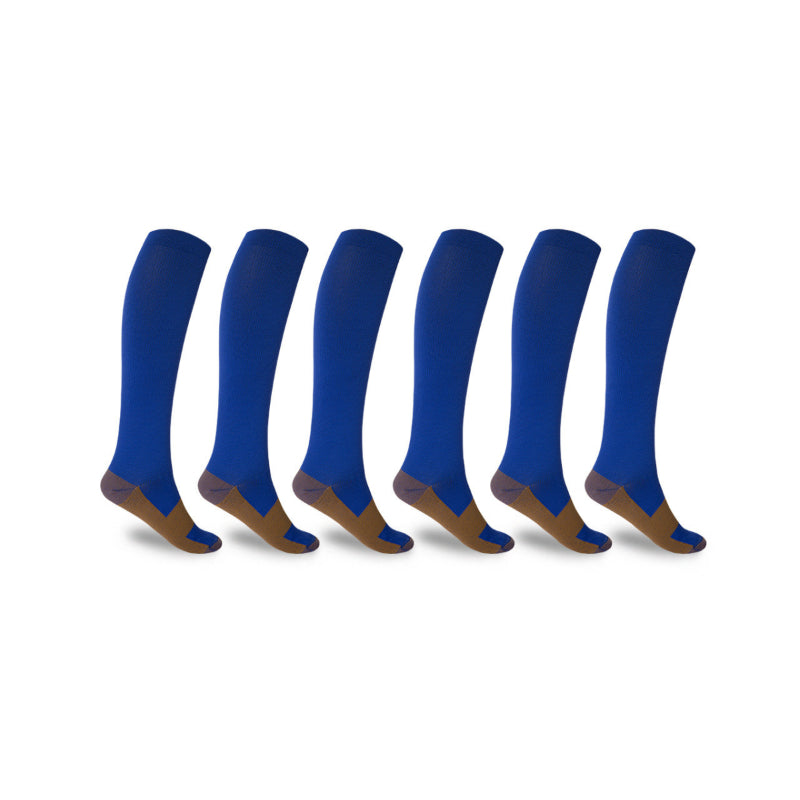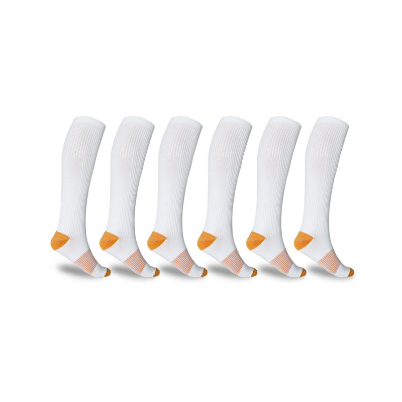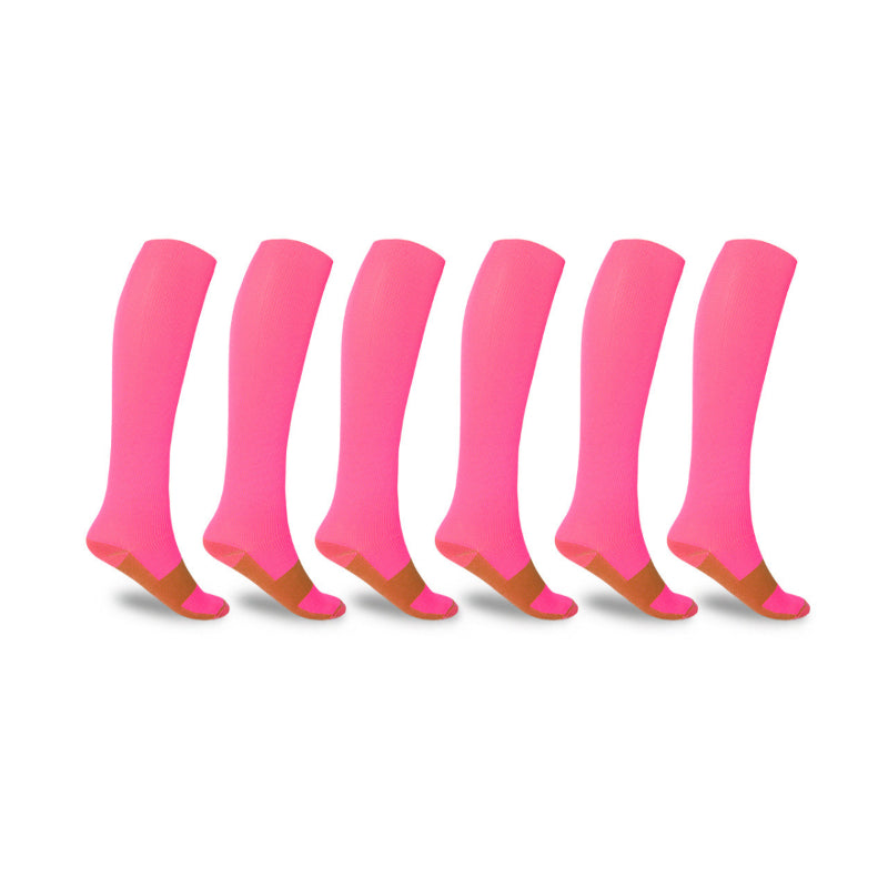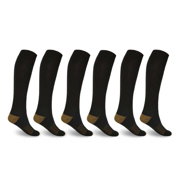Be ready to tackle your day and rise to the occasion with our Copper Compression Socks For Men And Women! These knee-high wonder socks are infused with copper fibers, perfect for both men and women who are always on the go and looking for support while relieving stress. Lightweight nylon and spandex deliver comfort and support that lasts all day long. So, jump on that copper train and get yourself a pair of these copper-infused compression socks.