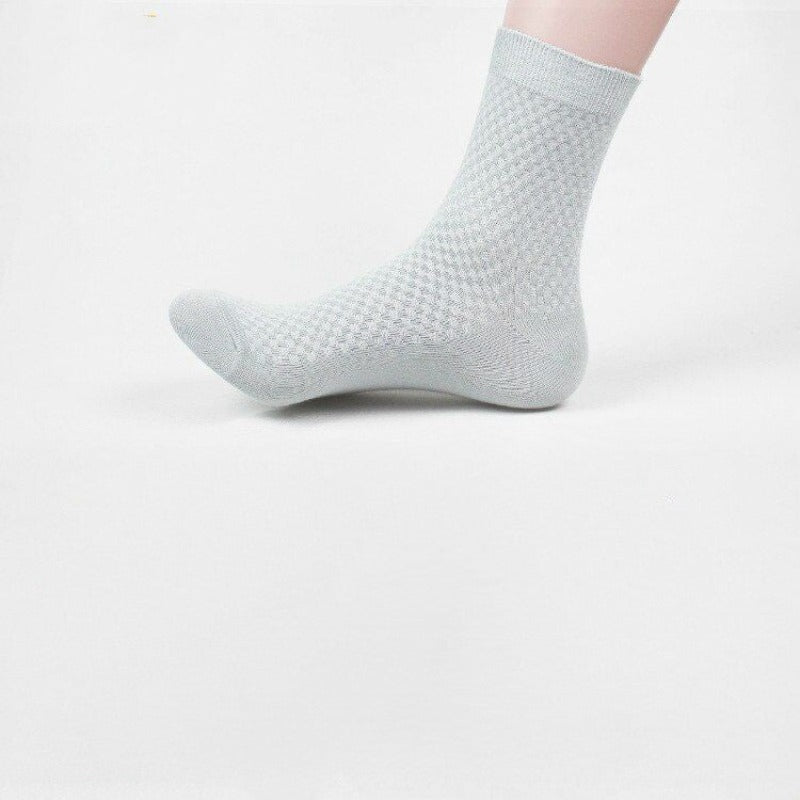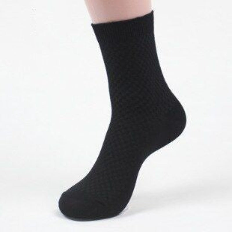 Elevate your feet's fashion sense with these Men Bamboo Fiber Formal Socks, featuring a mid-length design, and luxurious fabric crafted from a blend of light nylon and bamboo fiber. Stylishly designed for men, this five-pair set offers a timeless look with comfort and convenience that will last. Make a lasting impression wherever you go.