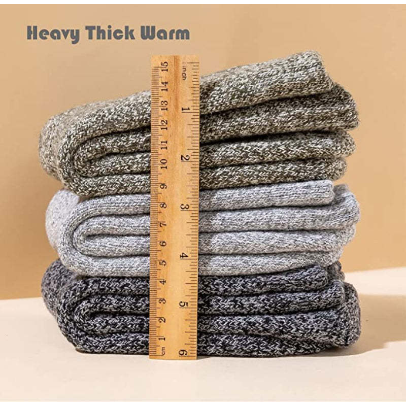 Men's Super Thick Wool Warm Socks come in a pack and have a casual style making them suitable for everyday wear. The solid pattern and combination of cotton, polyester, spandex, and wool make them durable and soft to the touch. These socks are thick enough to keep your feet warm and cozy during the winter making them the perfect choice for staying warm and stylish.