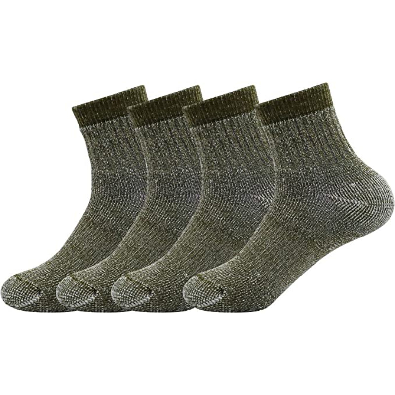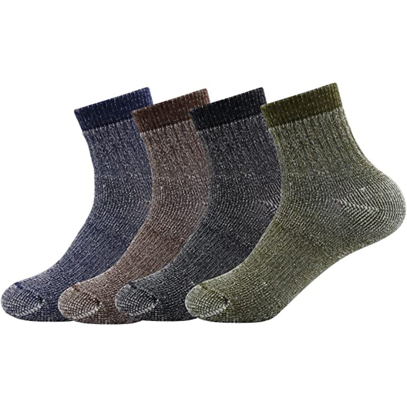 Men's Wool Hiking Thermal Socks Pack of 4 are made with a combination of wool and other materials, such as polyester and spandex, which helps to keep feet warm and dry. The wool also has moisture-wicking properties, which helps to keep feet dry and comfortable. The pack of 4 is a great value, ensuring that you will always have a clean, dry pair of socks to wear on your next hike. They are perfect for cold weather, keeping your feet warm and comfortable all day long.