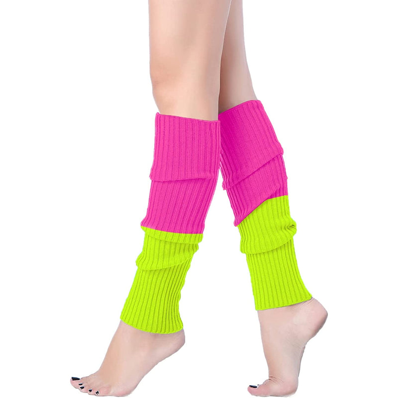 Mixed Colors Women Juniors Neon Ribbed Leg Warmers for 80s Eighty's Party Sports Yoga