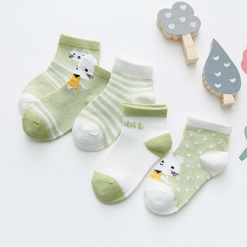 Introducing our Newborn Cotton Mesh Socks, designed with utmost comfort for your little one. These socks are made from a blend of cotton, polyester, and spandex, ensuring a soft and gentle touch against their delicate skin. With a casual style and adorable cartoon patterns, these socks are perfect for adding a playful touch to your baby's outfit. These socks are specifically designed for babies, making them an ideal choice for your little bundle of joy.
