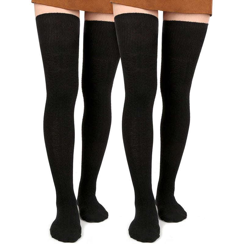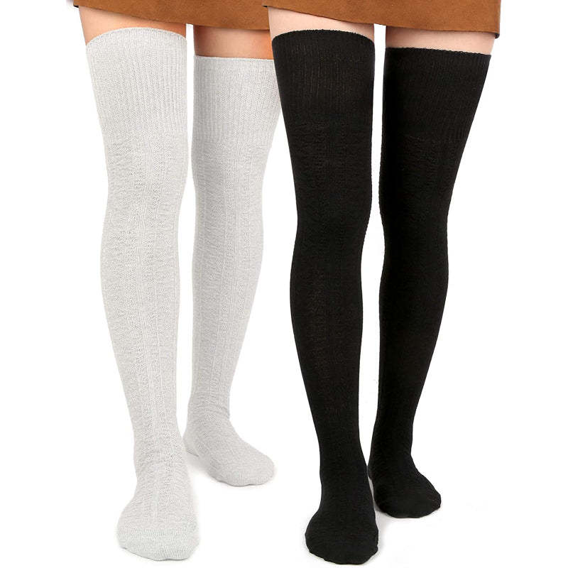 Pack of 2 Women Thigh High Socks Extra Long Cotton Knit Warm Thick Tall Long Boot Stockings Leg Warmers