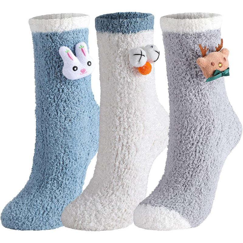 The moderate thickness is nice for wearing during sleep, which can keep your feet warm and help you have a sweet dream. They're suitable for longtime-standing work as well. Women fuzzy socks are soft enough as sleeping socks as well as a great choice for slippers socks. You can also go out wearing it in heavy boots in the freezing winter.