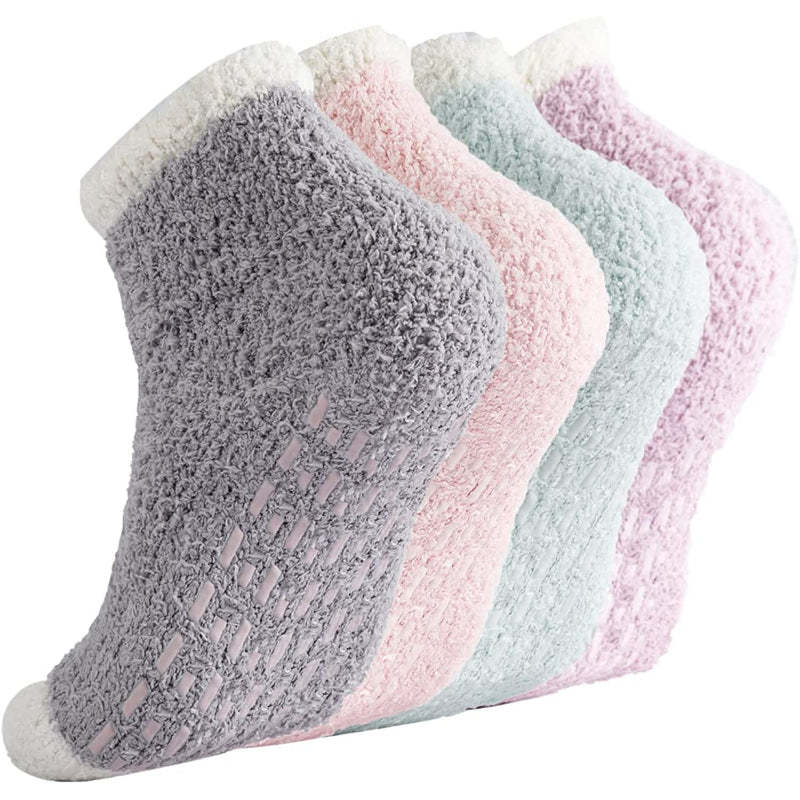High Quality polyester and spandex, make our fuzzy socks ultra soft, cozy, warm and stretchable. Giving your feet maximum coziness and keeping you warm in cold days, fluffy socks protect your toe, ankle and sole, Keep enough body temperature to make exercise safer. Machine Washable.