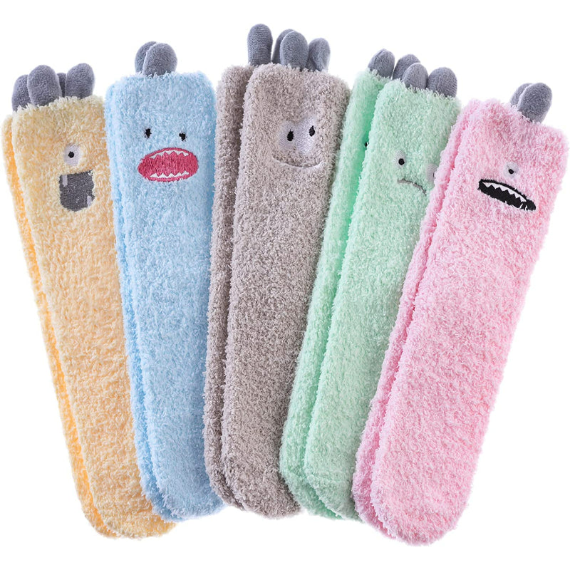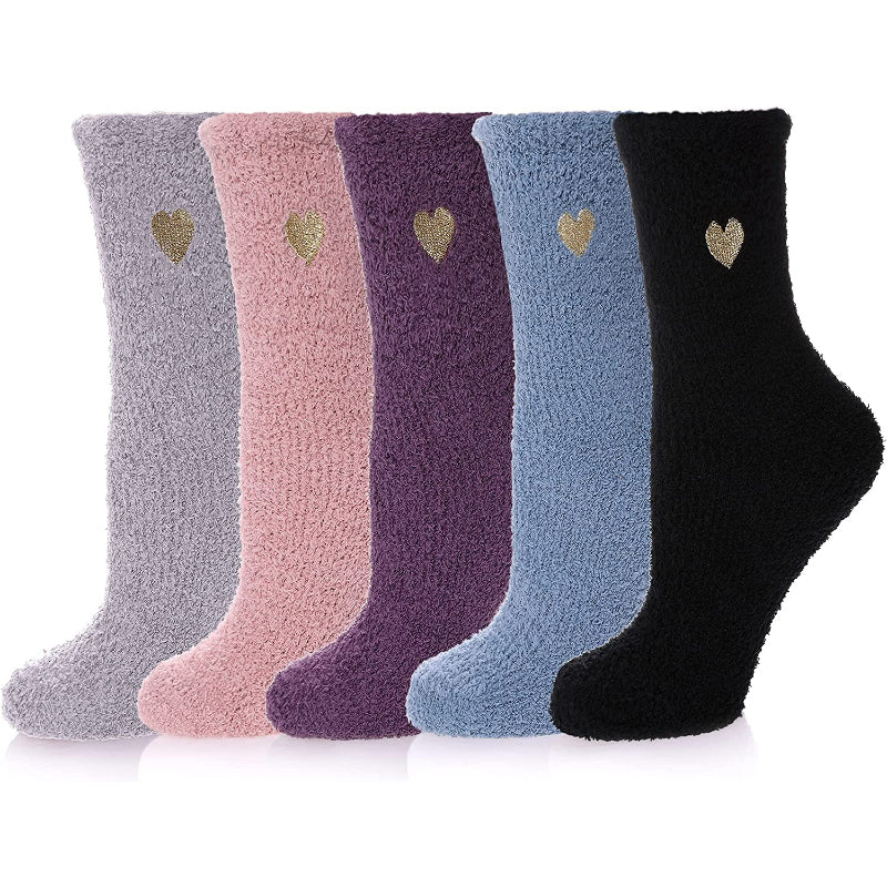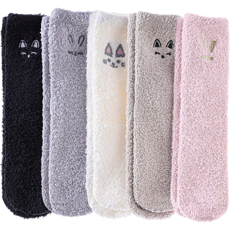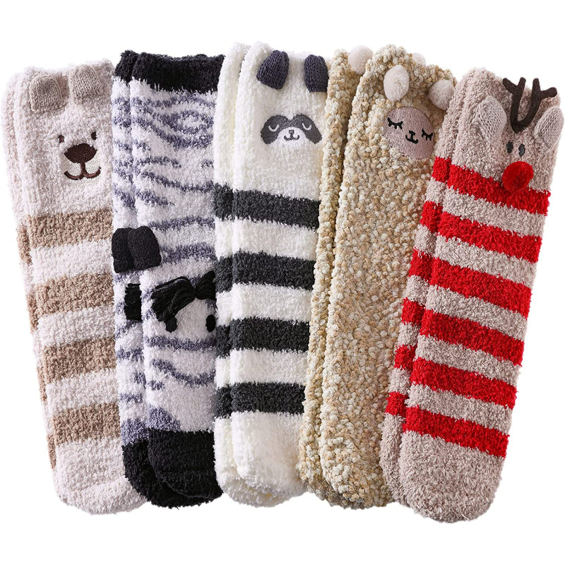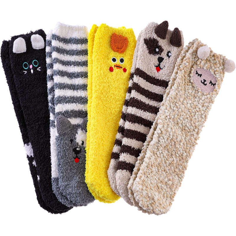 Pack Of 5 Womens Fuzzy Slipper Socks Animal Soft Warm Cute Microfiber Cozy Fluffy Winter Christmas Socks