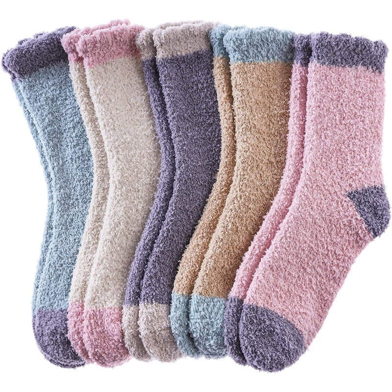 • Super soft warm microfiber stretchy women fuzzy socks are made of premium quality polyester & spandex. The elastic bands at the ankle do not compress your legs giving you the best, comfortable wear experience for everyday activities and even during sleep.