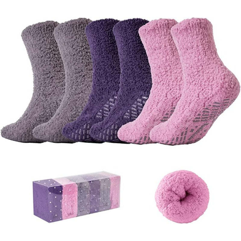 Hospital Socks: Non-slip hospital socks with gripping rubber treads design will provide safety and security when you lounging around the house day or night. Non-slip fuzzy socks make sure you don't slip or slide. Also, it will not scuffing your indoor floors.