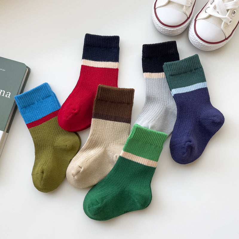 Introducing the Patchwork Stripes Baby Tube Socks which are crafted with a masterful blend of cotton and polyester, making them a luxurious choice for children's feet. Their beautiful striped pattern is gracefully patchworked for a classic and timeless look that is sure to add elegance to any ensemble. So grab a pair at the earliest.