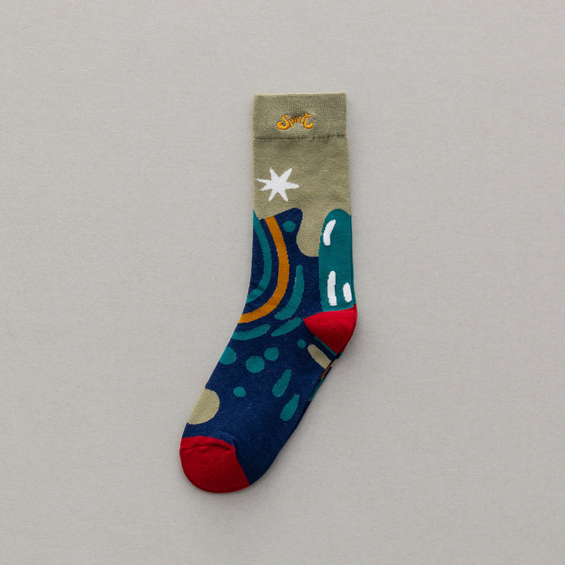Express your unique personality with our Personality Type Embroidery Cotton Socks. Each package includes 1 piece of these stylish socks. With a middle tube height, they provide a perfect balance of coverage and comfort. The floral pattern adds a touch of elegance to your outfit. Made from high-quality cotton, these casual socks are breathable, sweat-absorbent, and anti-friction, ensuring your feet stay cool and dry. Suitable for all seasons, their literature and art style and embroidered craft make them a trendy choice. Step up your fashion game with these statement socks.