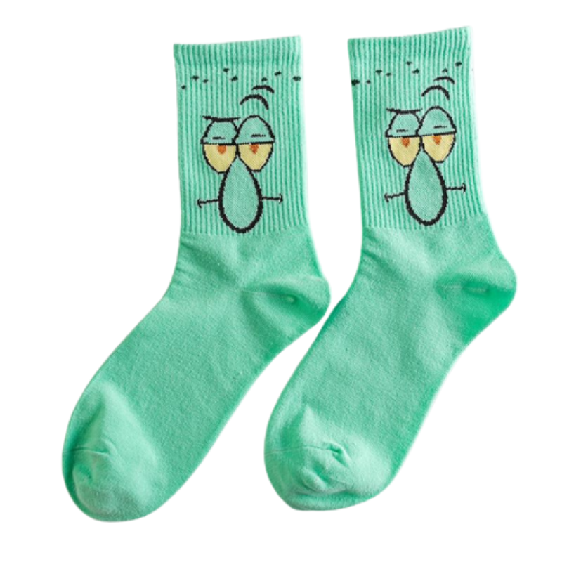 Your will love these fun Squidward Printed Cotton Socks! Made of a comfy cotton and nylon blend, these middle-length socks feature a fun cartoon print of Squidward's unmistakable poker face. Grab this unique funky pair soon and put some quirk into your wardrobe.