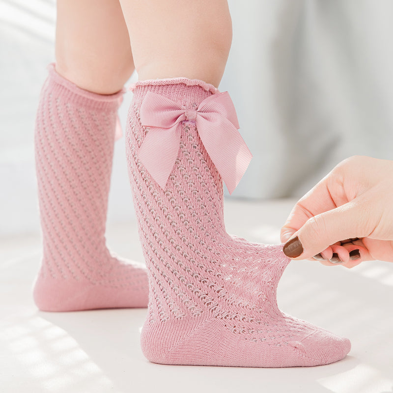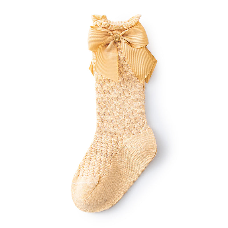 Enhance your little one's wardrobe with these Summer Girls Kids Socks, crafted from a sumptuous cotton blend for all-day comfort. The solid pattern, normal size fit, and big bow styling lend a touch of sophistication while she's out and about. Perfect for warmer climates, these socks are ready for spring, summer, and autumn.