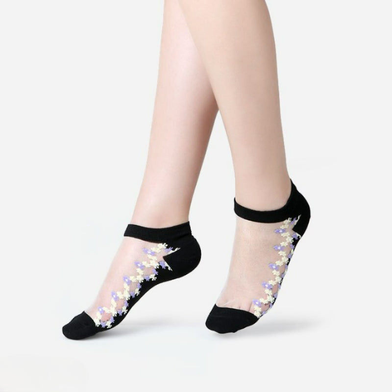 Introducing our Transparent Lace Mesh Ankle Net Socks. Crafted with high-quality silk, these socks offer a touch of elegance and sophistication to any outfit. With a low-cut tube height and casual design, they are perfect for daily wear. The thick material ensures durability and long-lasting comfort. Available in one size, these socks provide a snug fit for various foot sizes. Experience the charm of transparency and the breathability of lace mesh, while adding a stylish flair to your footwear collection. Elevate your fashion statement effortlessly.