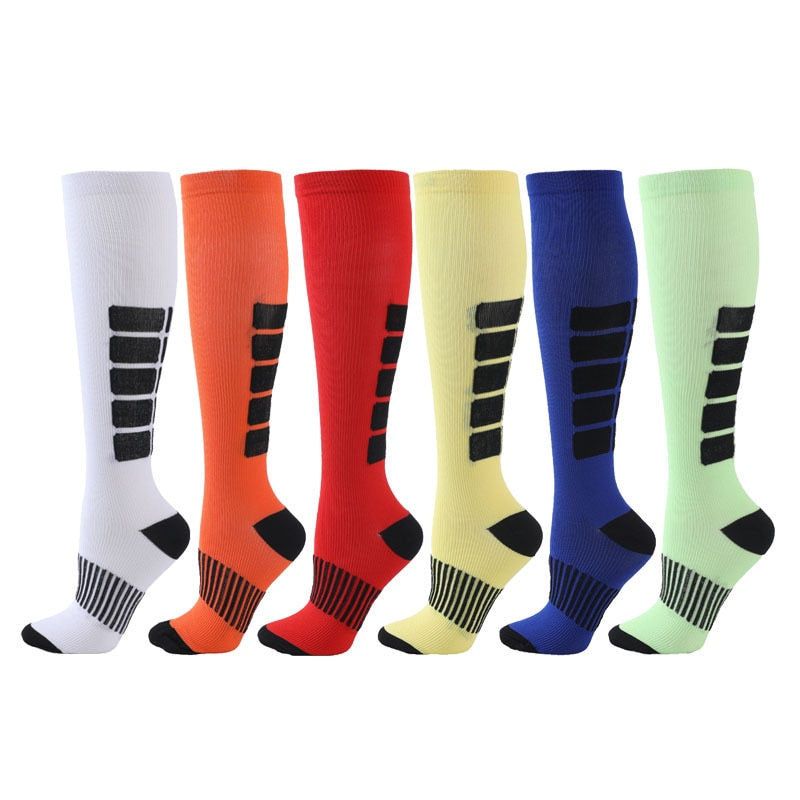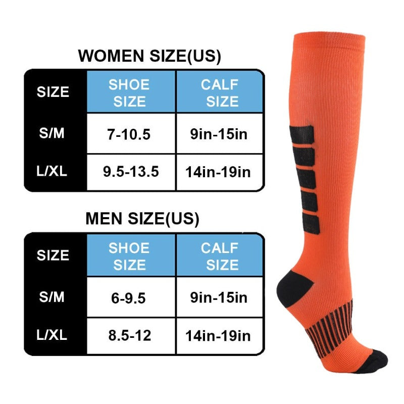 Our Unisex Sports Compression Socks provide unparalleled support and stability for intense athletic activity. Crafted from breathable nylon with a high tube height for optimal performance, these socks are the pinnacle of comfort and style for the modern sportsperson. Step onto the field or court with confidence and experience top-of-the-line protection from each and every move.