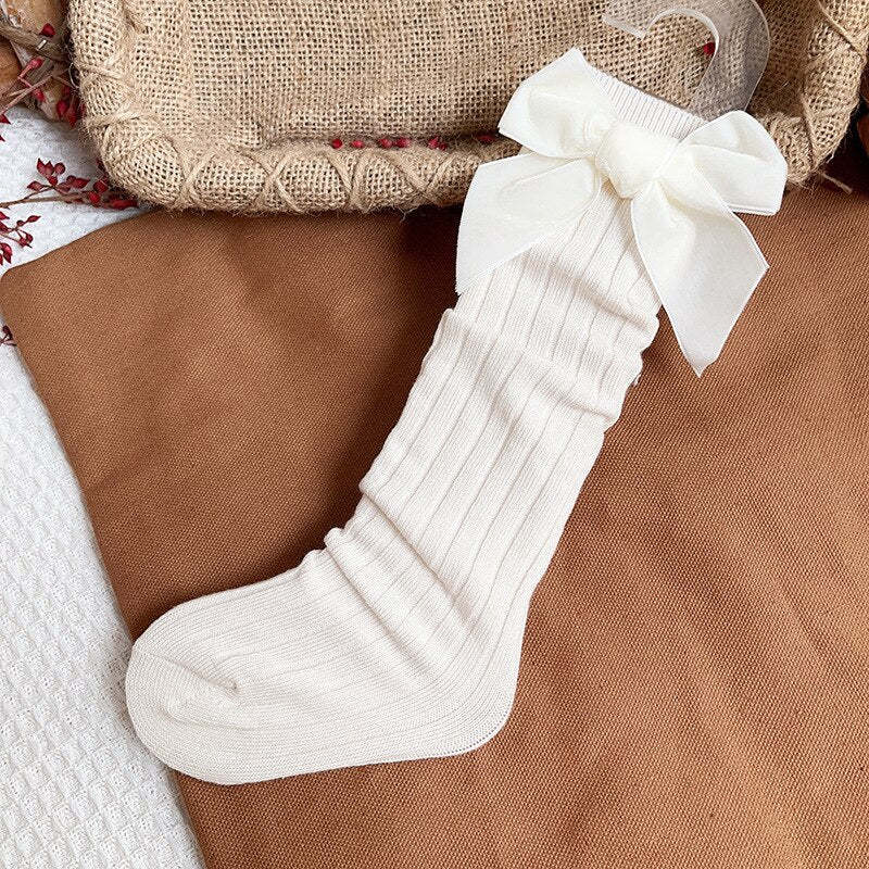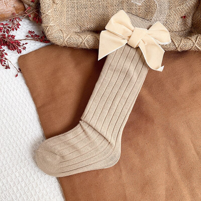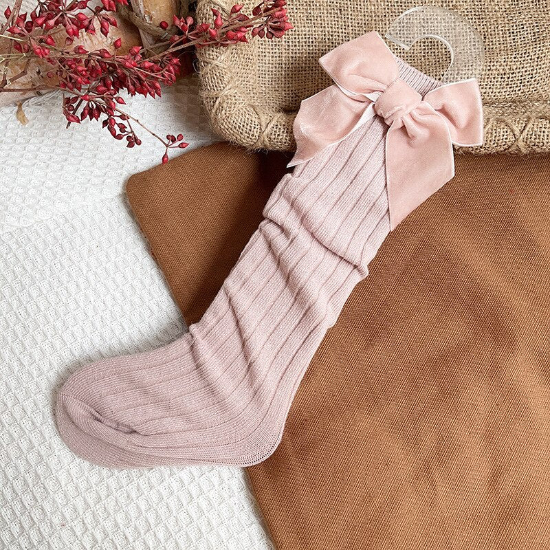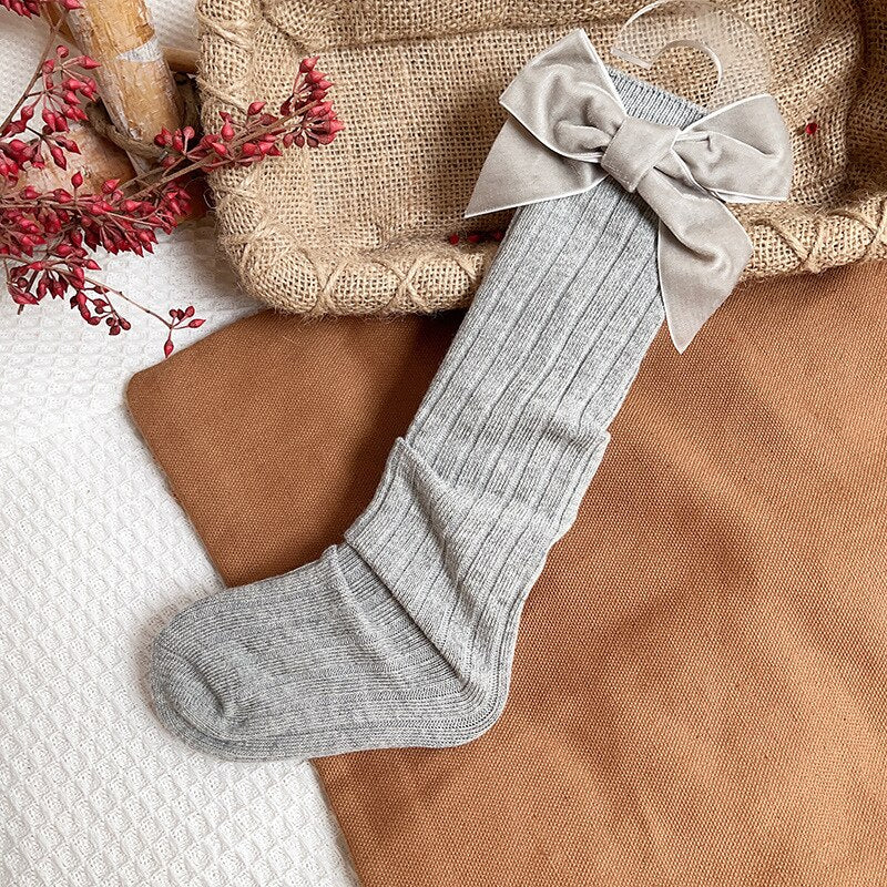 Exuding timeless elegance, these Velvet Bow Cotton Children Socks are crafted from a luxurious cotton and polyester blend, making them perfect for adding a hint of poise to any little one's outfit. Lovingly crafted with a solid pattern and a gentle bow, these knee-length tube socks add a touch of sophistication to any look and are sure to keep your precious toddler warm during the cooler spring and autumn months.