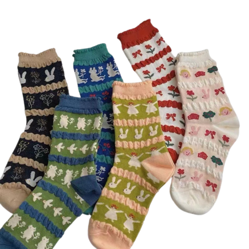Take tiny feet on an adventure with these Women Rabbit Flower Cotton Socks! Made from comfortable cotton, these fun-filled socks stretch up to middle length and feature a unique rabbit and flower print pattern that’s sure to put a smile on any little one’s face. So be ready for your kids to hop, skip and jump with joy all about town in this.