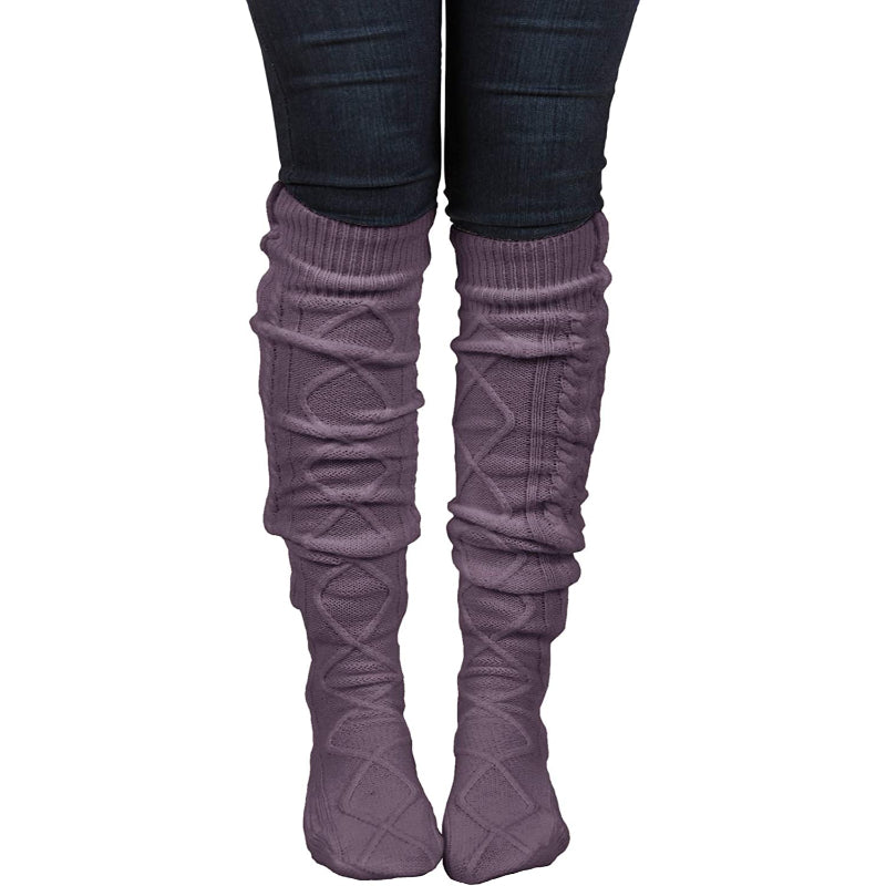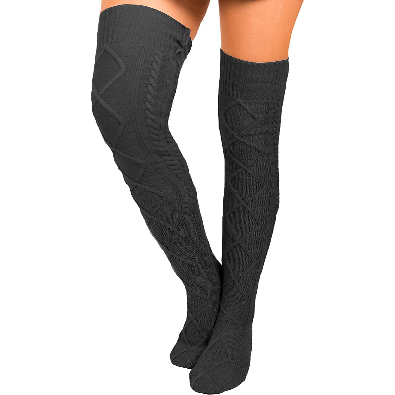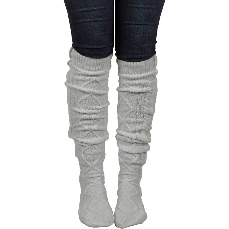 Women's Cable Knit Knee-High Winter Boot Socks Extra Long Thigh Leg Warmers Stocking