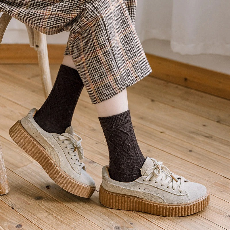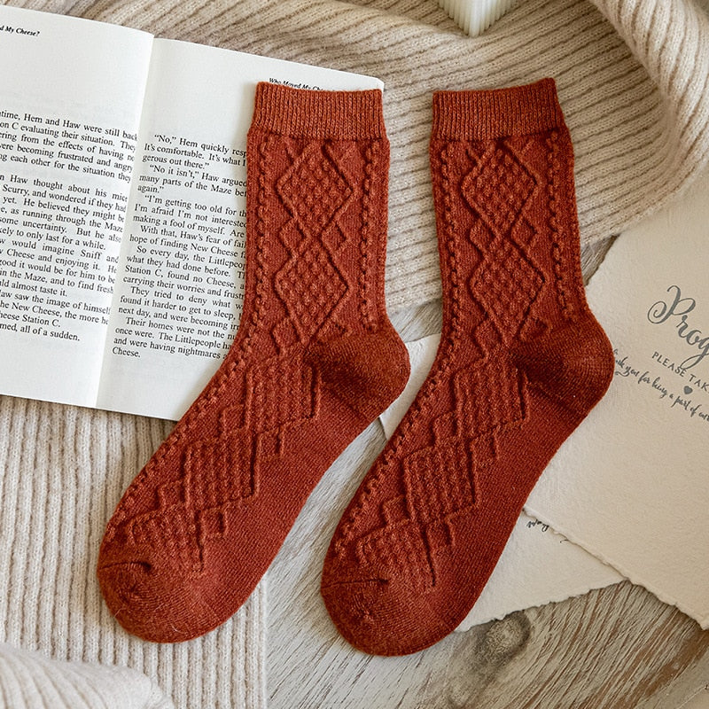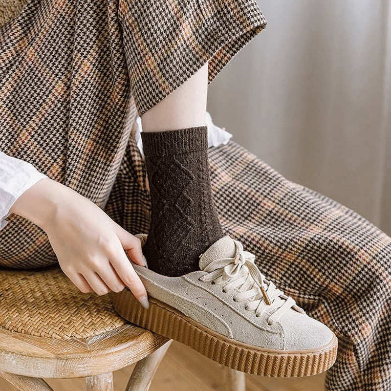Women's Winter Cashmere Wool Socks are a must-have for staying warm during the colder months. These socks are thick, making them perfect for winter weather, and come in a middle tube height. The socks come in a set of 2 and are designed for casual wear. They feature a solid pattern and are made of wool, a material known for its warmth and durability. With their high-quality materials and functional design, these socks are a great choice for anyone looking to keep their feet warm and comfortable during the winter.